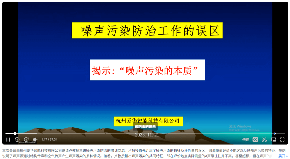 2025年11月21日,杭州愛華智能科技有限公司有幸邀請(qǐng)了原廣州市環(huán)境監(jiān)測(cè)中心站教授級(jí)高級(jí)工程師盧慶普老師前來交流指導(dǎo),并通過線下和線上視頻會(huì)議模式,為從事噪聲監(jiān)測(cè)及污染防治工作的廣大客戶朋友做了“噪聲污染防治工作誤區(qū)與本質(zhì)探析”專題培訓(xùn)交流會(huì)。